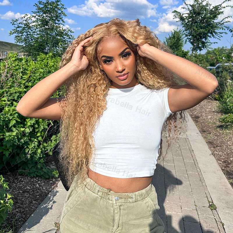 | Product Name | #27 Light Brown Colored Wig Water Wave Curly Human Hair Wigs Free Part |