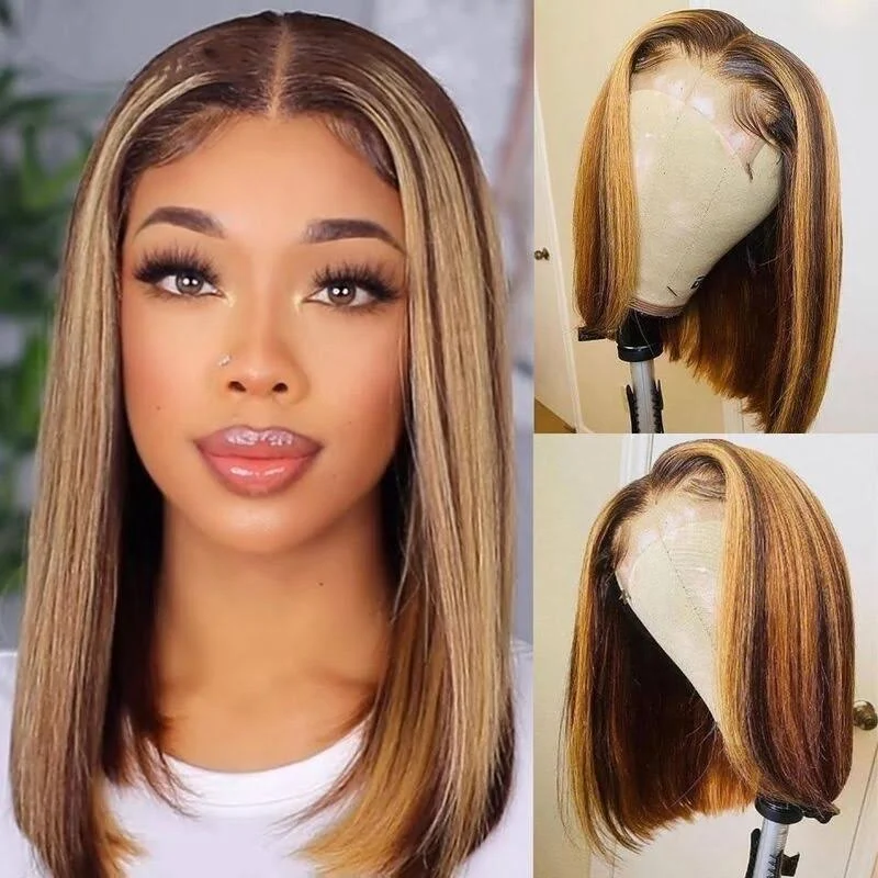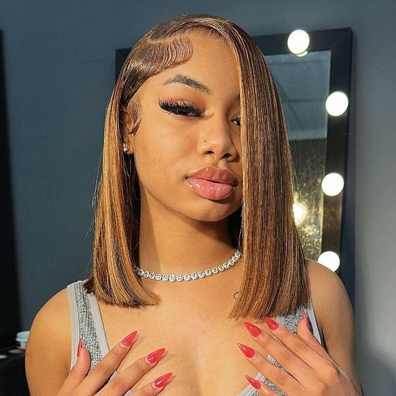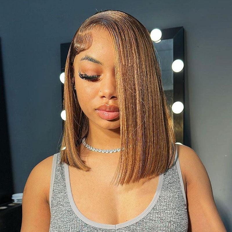 | Product Name | Honey Blonde Highlights Color Short Bob Straight Human Hair Wig |