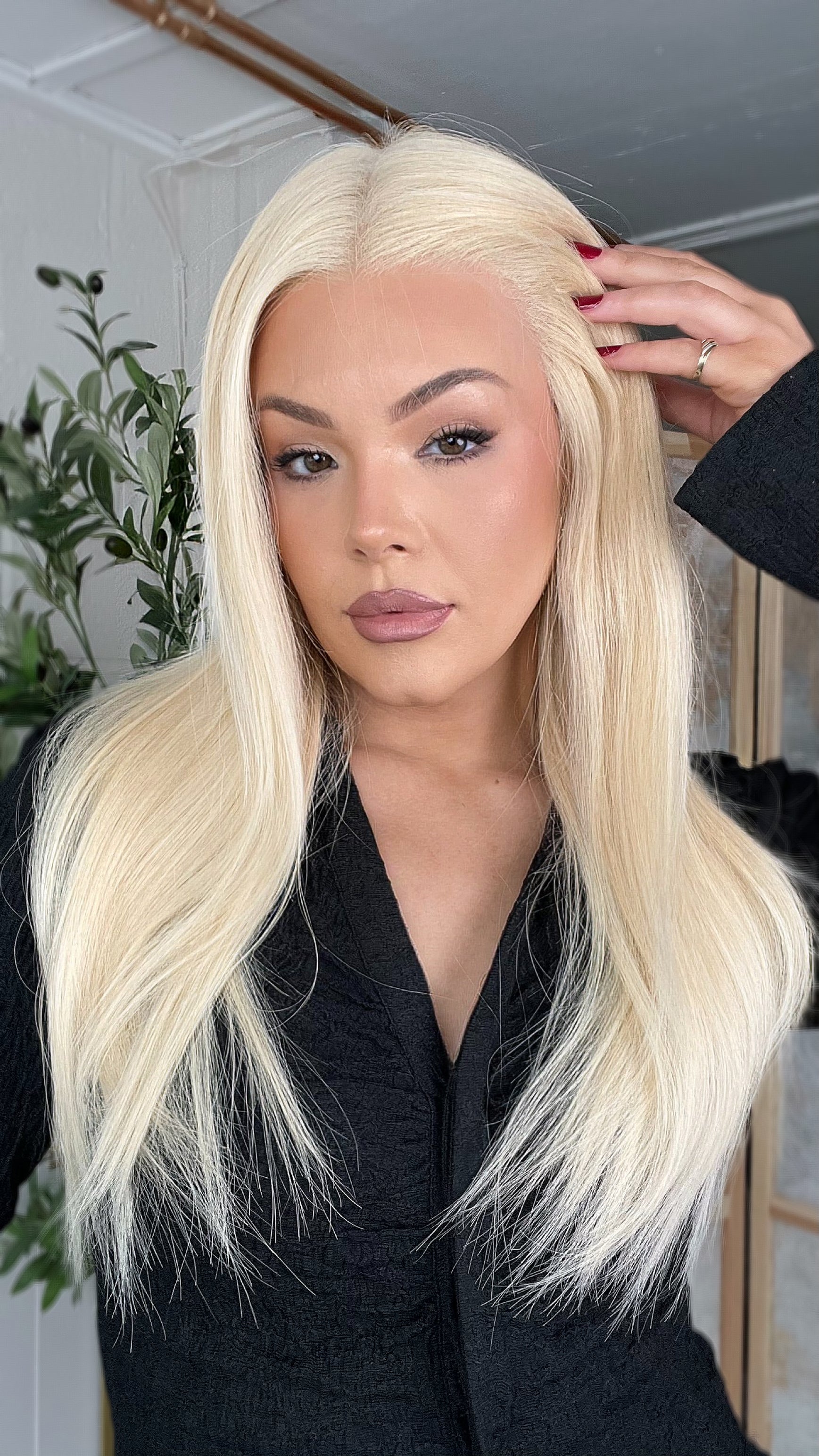Note for lace: For a more natural look with updos and side parts, our 5x5 HD glueless wig has been upgraded to a 13x6 HD glueless lace front. The larger lace area creates an undetectable hairline from any angle.