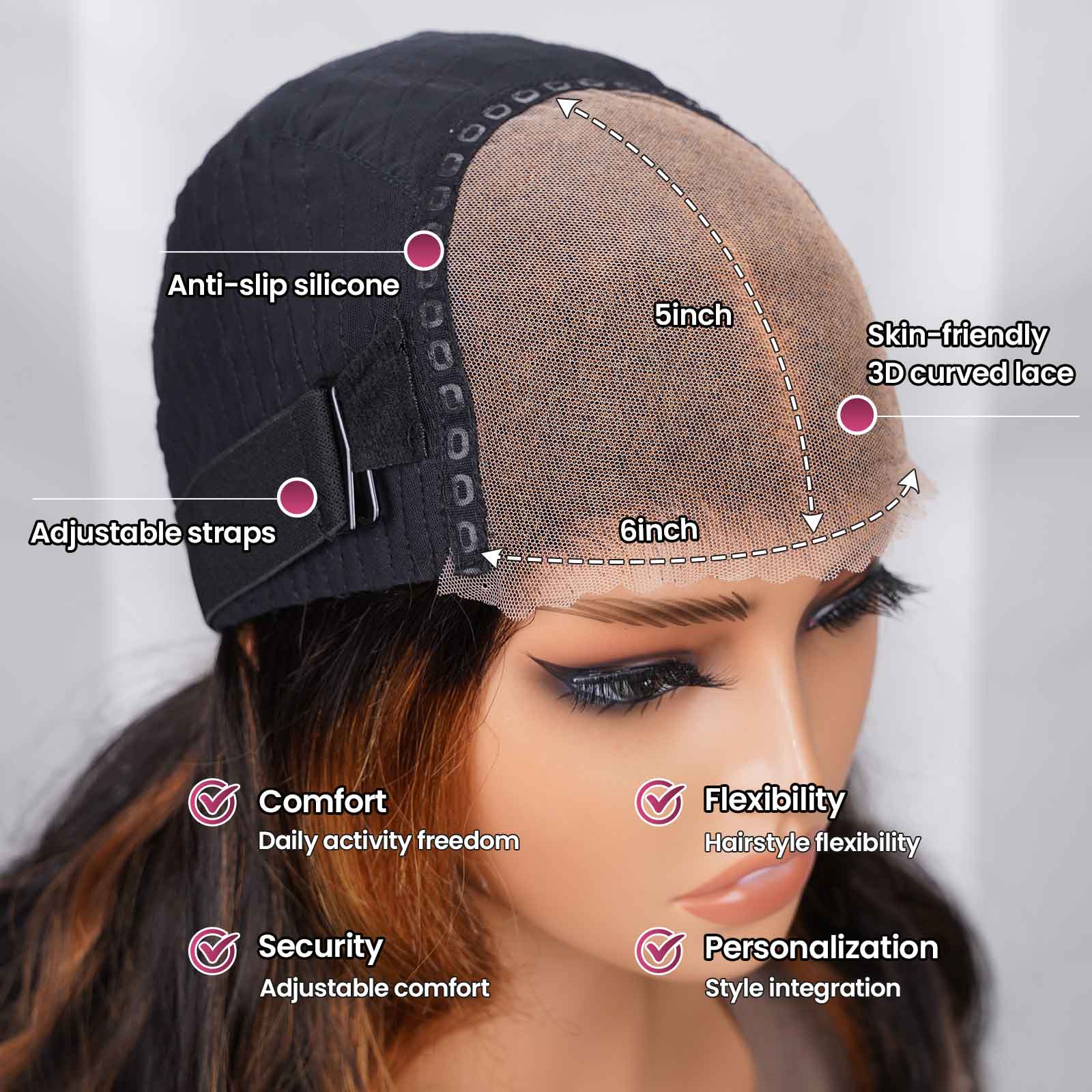Note for lace: For a more natural look with updos and side parts, our 5x5 HD glueless wig has been upgraded to a 13x6 HD glueless lace front. The larger lace area creates an undetectable hairline from any angle.