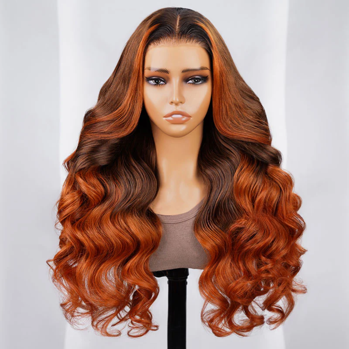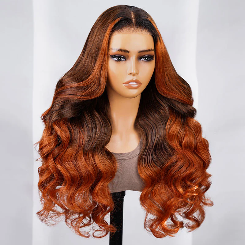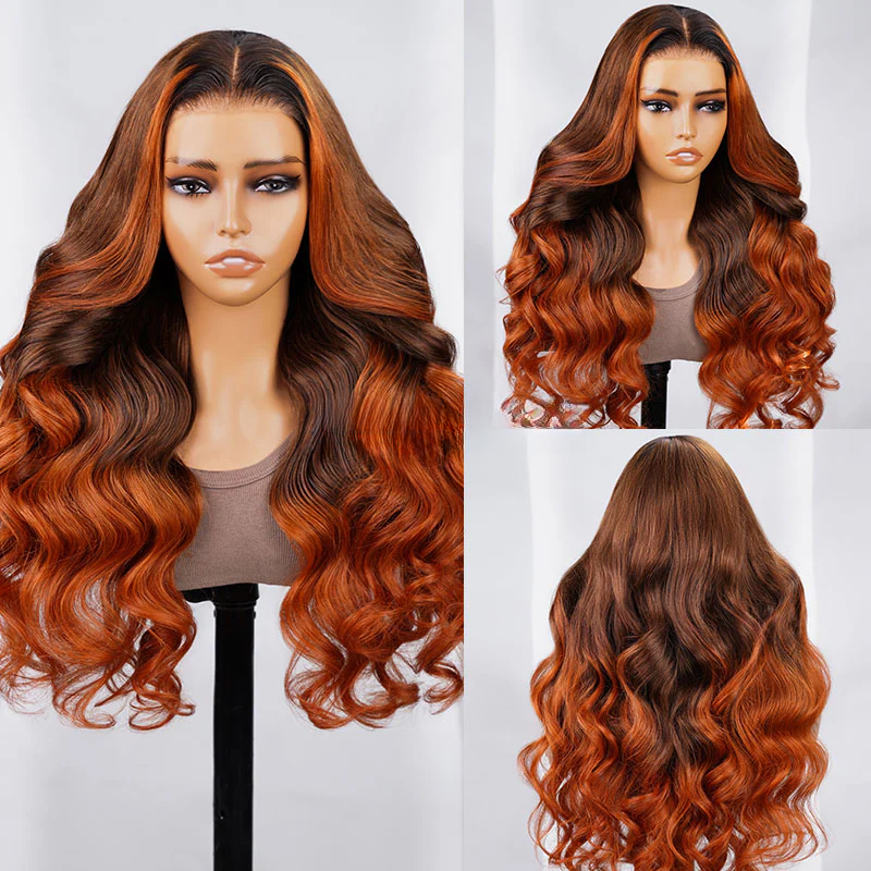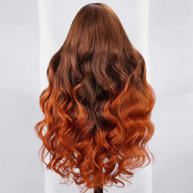 | Product Name | Ombre Brown to Ginger Color Wavy Wigs 100% Human Hair |