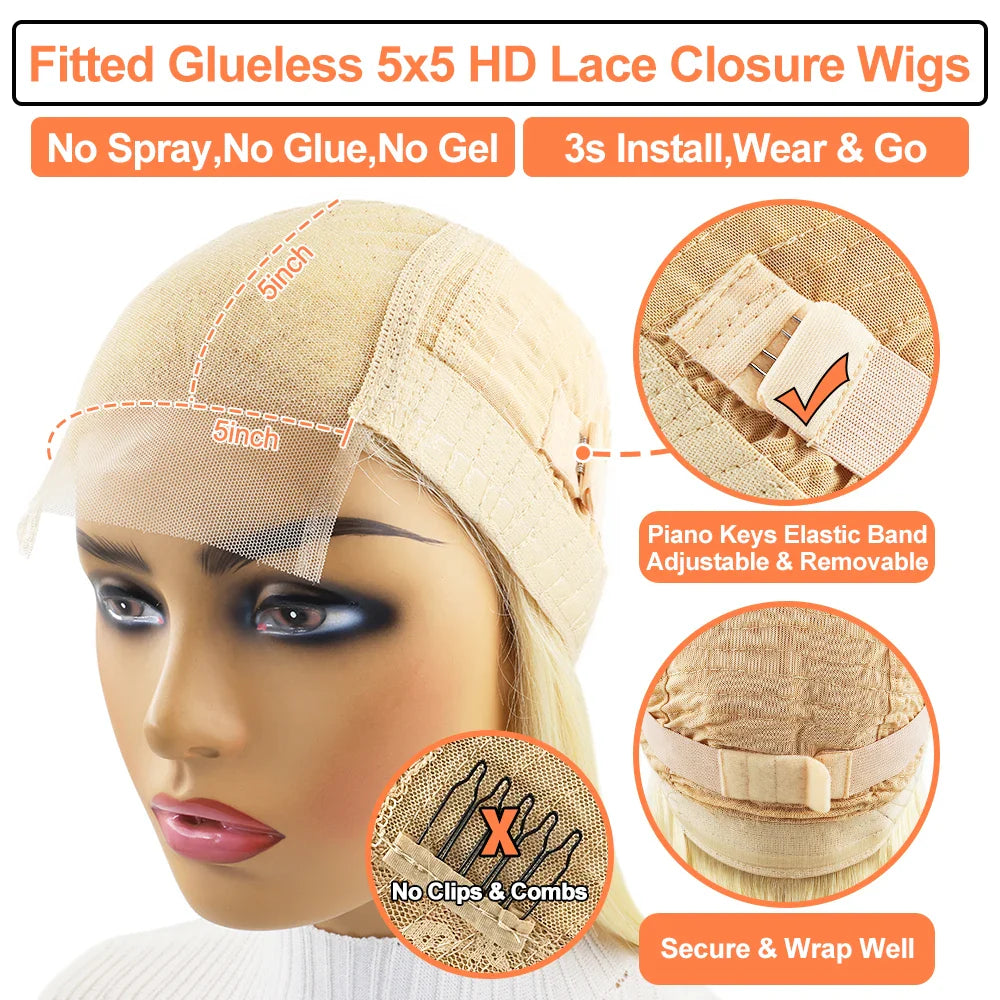 Note for lace: For a more natural look with updos and side parts, our 5x5 HD glueless wig has been upgraded to a 13x6 HD glueless lace front. The larger lace area creates an undetectable hairline from any angle.