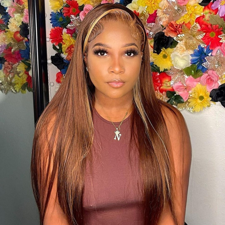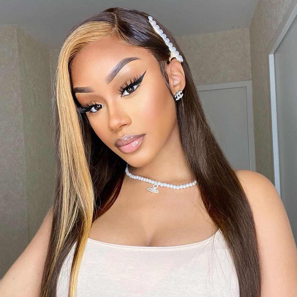 | Product Name | Chocolate Brown Skunk Stripe Highlight Glueless Human Hair Wig |